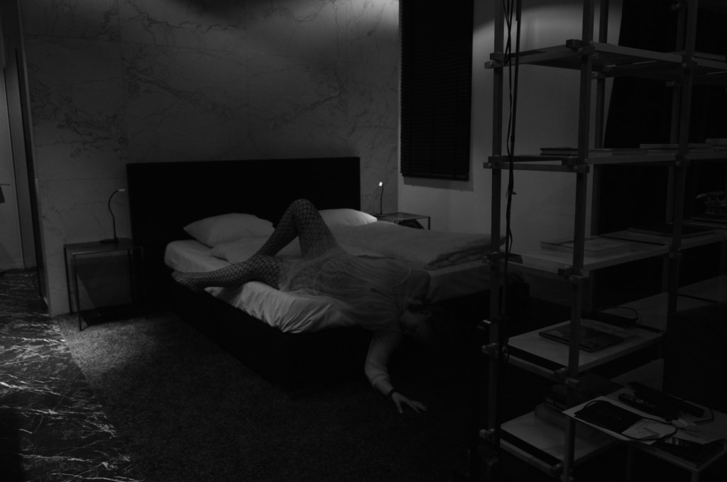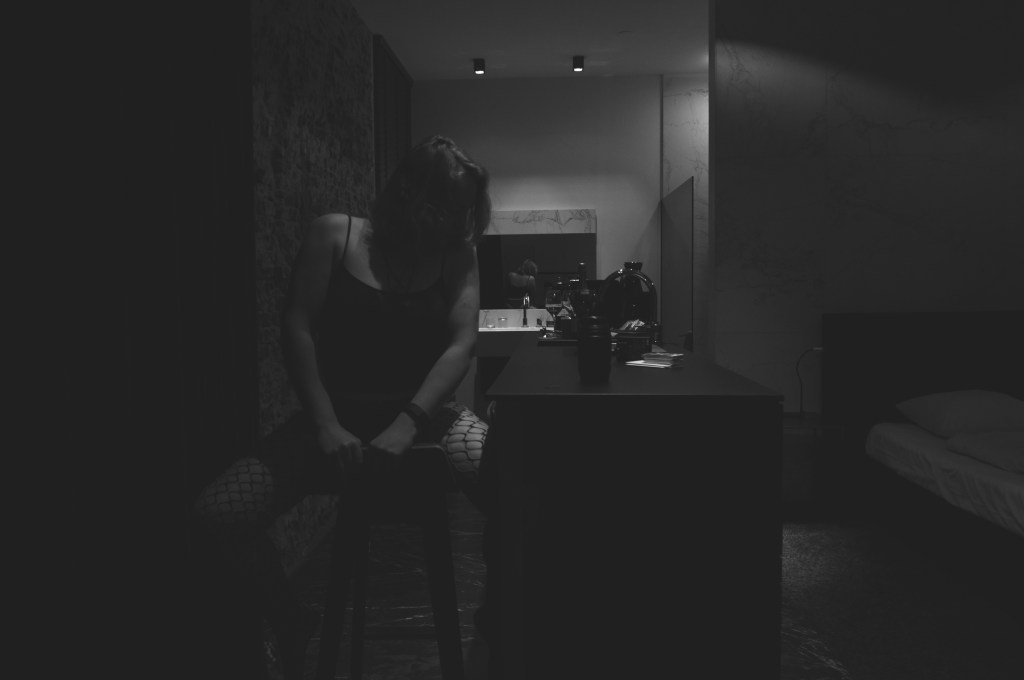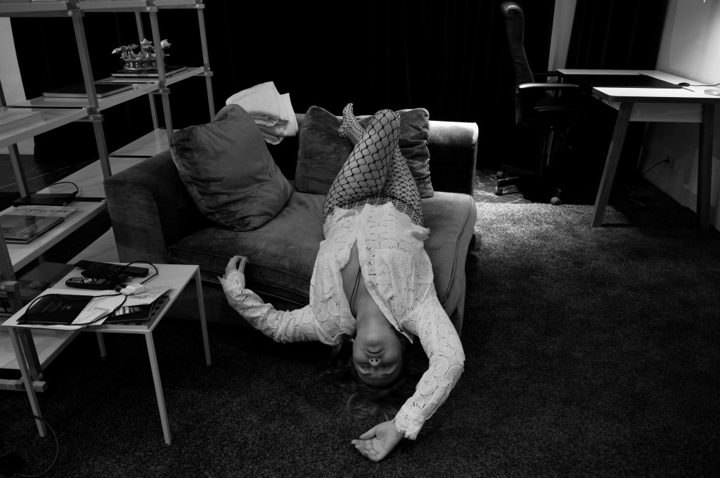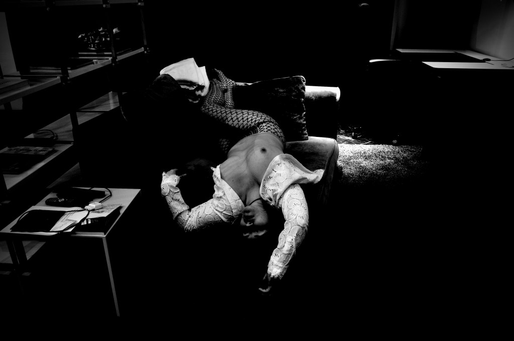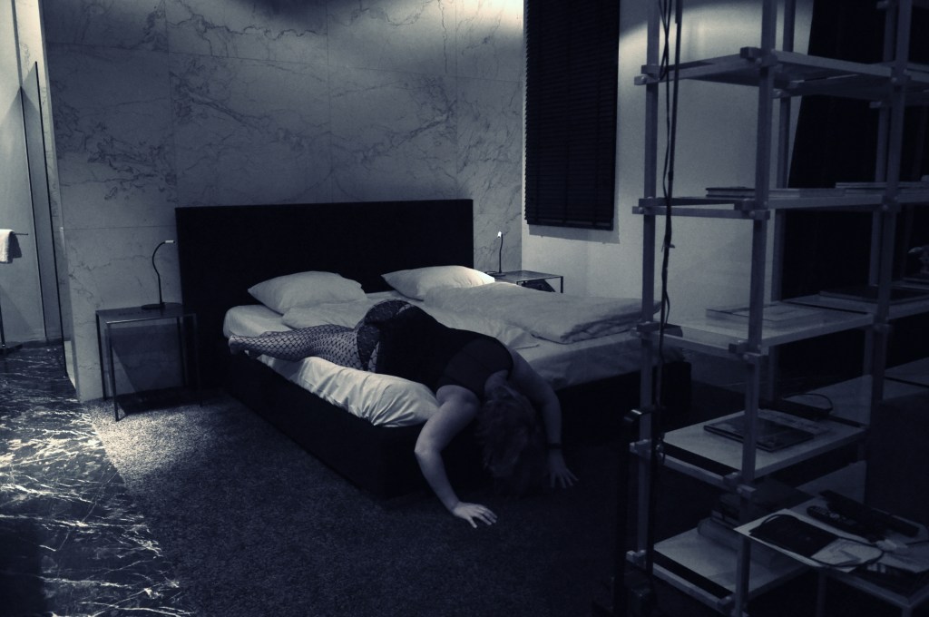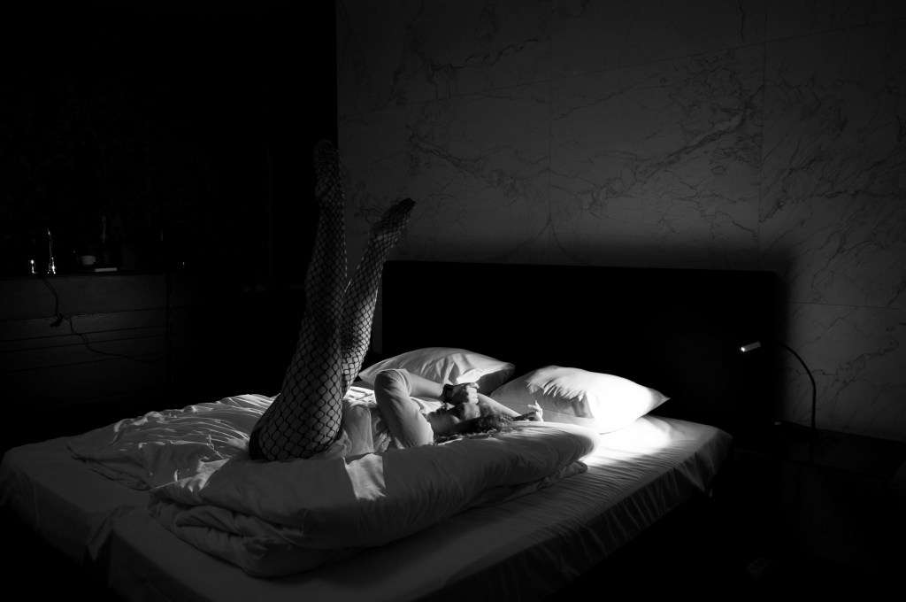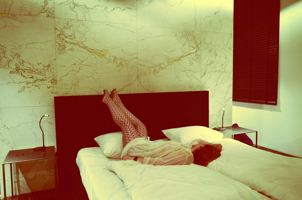 This is part of my big selfie project with a tripod and a camera when I started to travel the world more often and decided to photograph myself in hotel rooms.