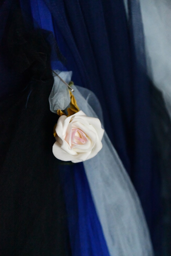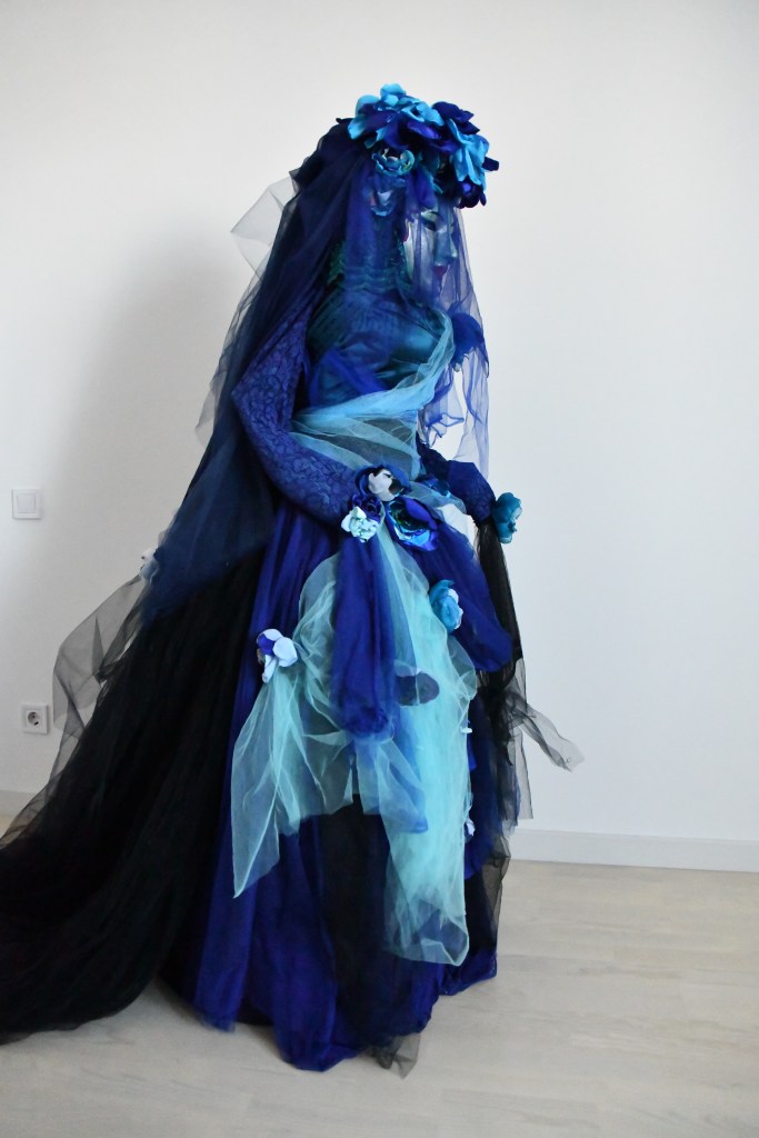 This sculpture is like my mirror. This is my self-portrait created from various materials, fabric, plastic, and something else. She is part of my global project. I portrayed myself in the best way, the best version of me. Lady in a hat with a rose and a veil. Mysteriousness and mystery.