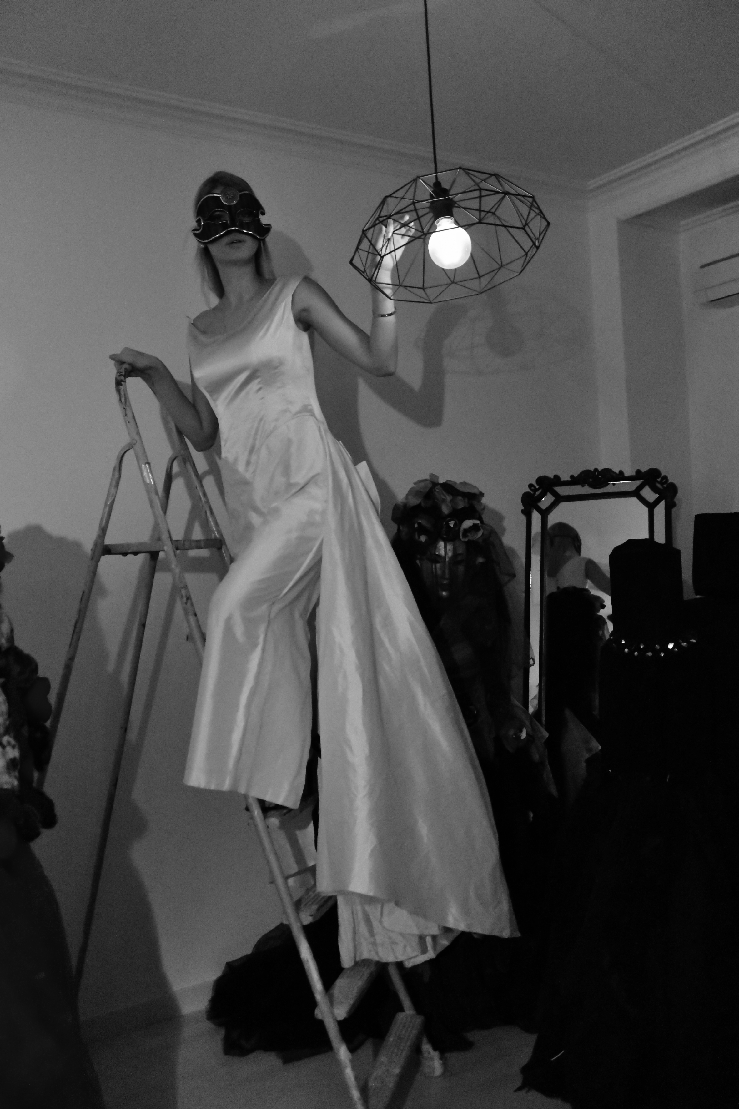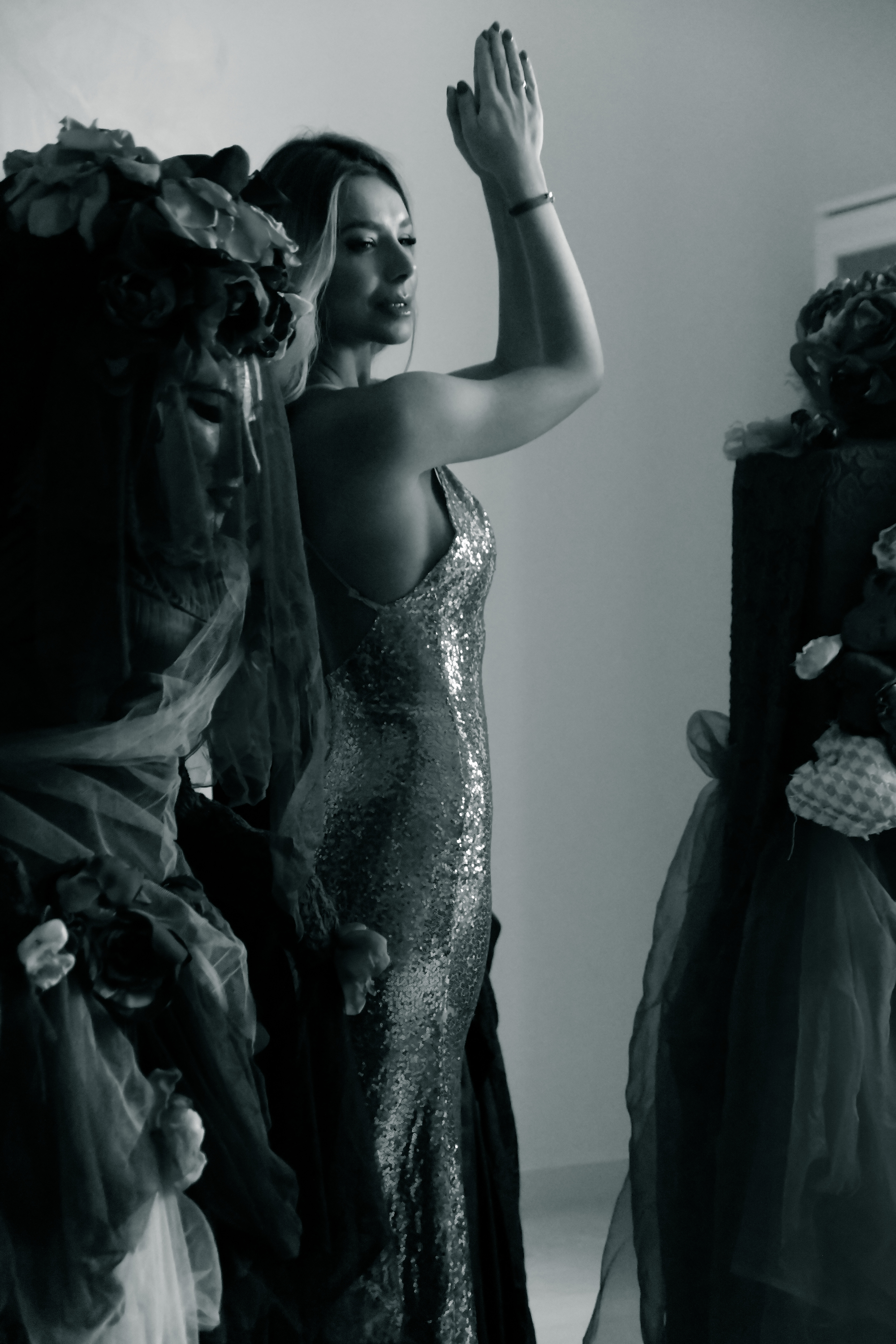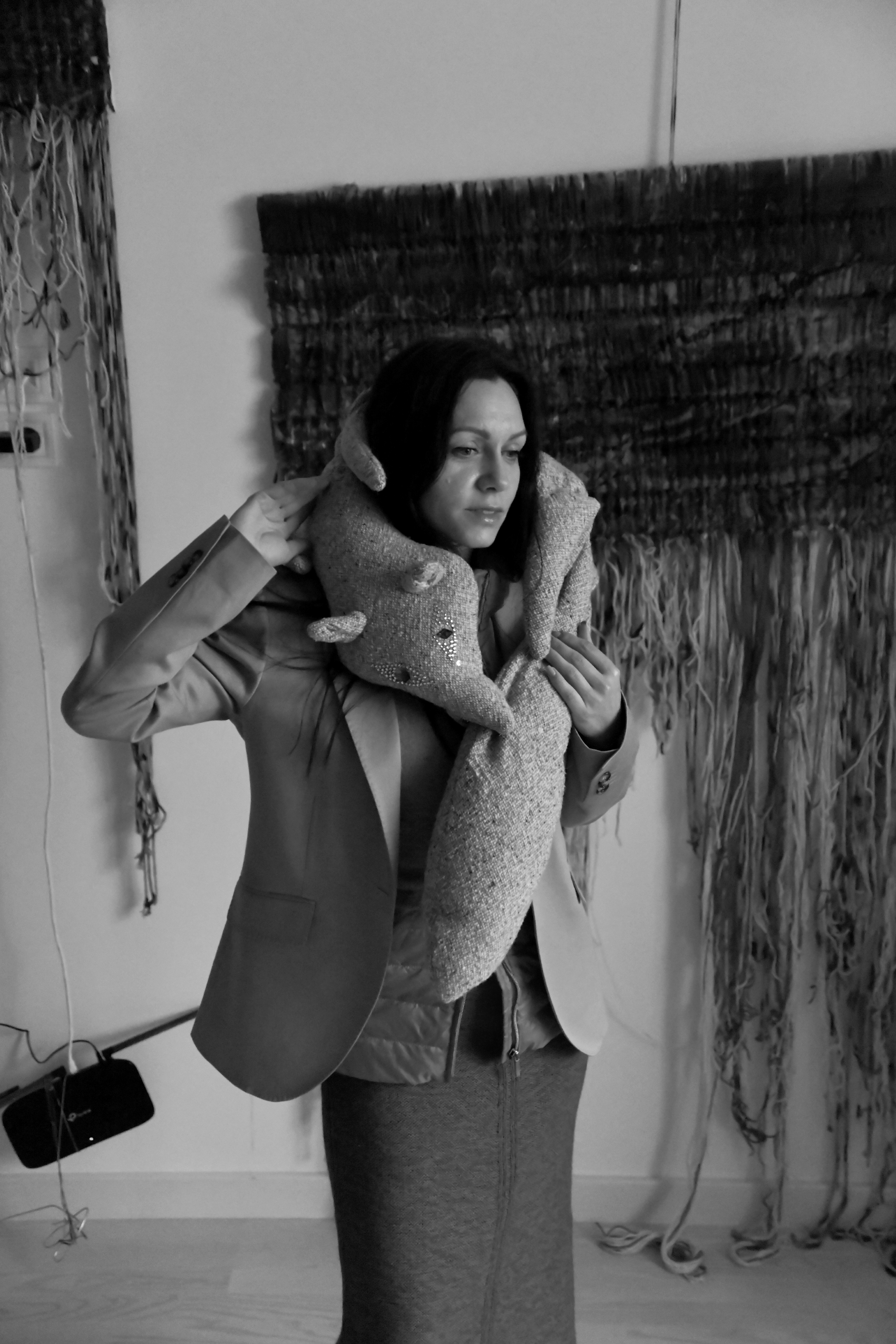 In this photo, I photographed a girlfriend and my eco-sculptures, all together. I created meaning here, Living and non-living doll. And not living dolls, This is another art project of mine. This is the protection of Ukraine, these are deep traditions connected from mother to child, meaning was put into the motanka doll and it was created by the gentle hands of the mistress of the house, like a talisman. I created my Human size dolls and shared positive energy with them. There are several and they are all different. This is my dream embedded in them and I’m sure it will come true, as I’m going to her. My apartment is located in the city of Kharkiv, Ukraine. And I want to return to it. On February 24, at 5 am, I woke up from the fact that a rocket exploded in the sky, far away, but I saw this huge flame, I stood on the balcony and looked at it. I am not in Kharkov now. I really want to return home as soon as possible. I will create even more coziness there and this is my creative place, where I constantly move furniture according to my idea in order to create something special. Before the exhibition in Berlin in 2017, an idea came to me, and I laid out huge canvases on the floor in the hall where there was no furniture and wrote, this is now one of my favorite works.