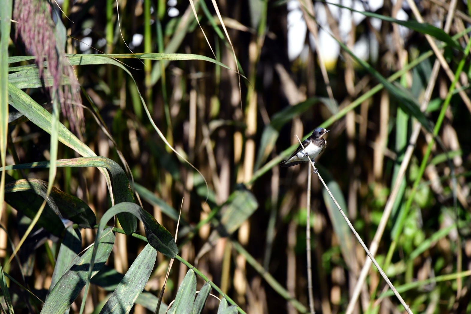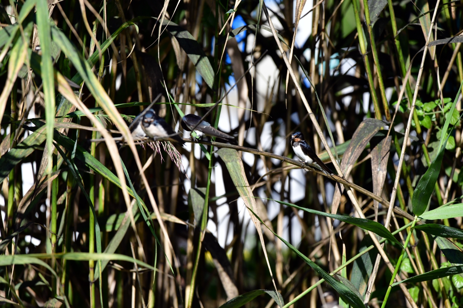 The barn swallow, (lat. Hirundo rustica) is a small migratory bird living in Europe, Asia, Africa and America, in this case, the photo was taken in the Poltava region of Ukraine. It is distinguished by a long tail with a deep fork-shaped slit and curved, long, sharp wings.