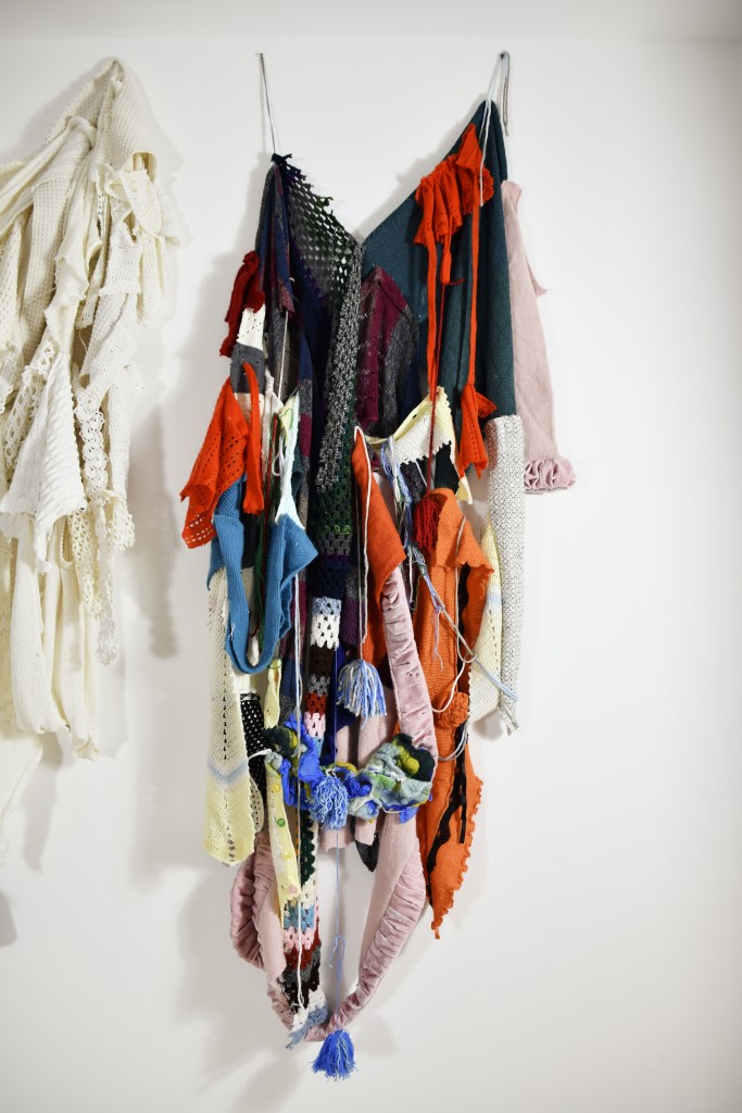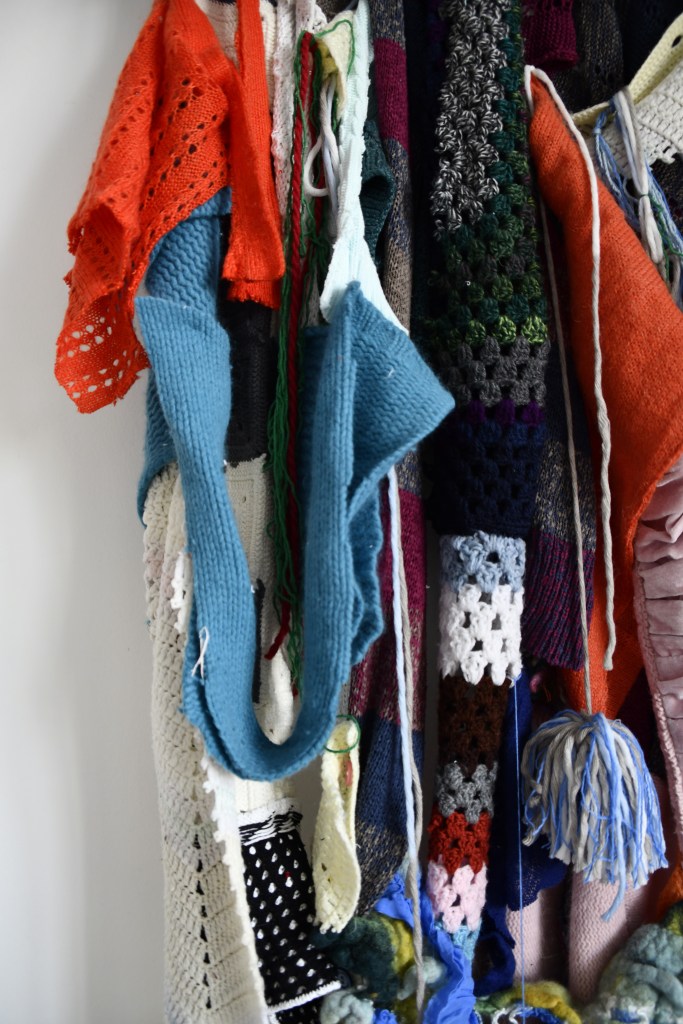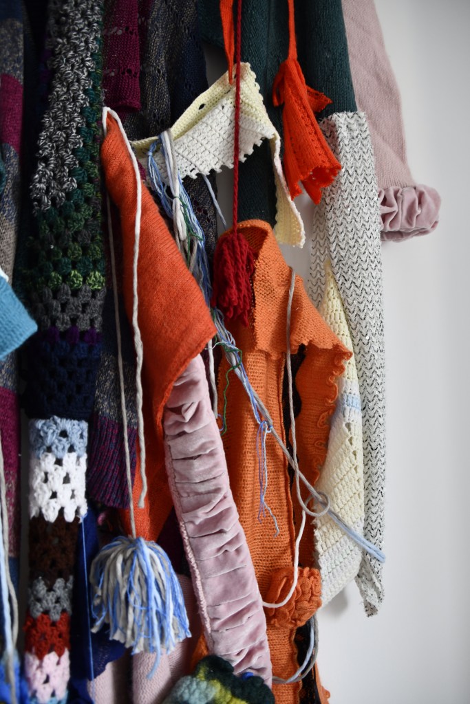 I wove a tapestry as I returned home to the front-line city of Kharkiv, which is constantly under fire. At home, I felt that I wanted to implement the ideas I had come up with earlier, I wanted to create something new, and the sounds of sirens and explosions did not bother me anymore. Created by the sound of sirens and explosions. Combining bright particles of yarn and thread, I imprint my positive attitude, I live a full life, I breathe. This work is one of the sari of my knitted tapestries, a modern interpretation of the carpet tapestries that used to be hung on the wall, let my bright tapestries reveal bright emotions, you can stay longer on to look at them and think about what emotions they evoke, let their unusualness fulfil desires, cause a surge of feelings, a feeling of life to the fullest. Harmonization in colours and space. Vibrations of the wondrous energy of feelings, a rich palette of the joy of life, happiness