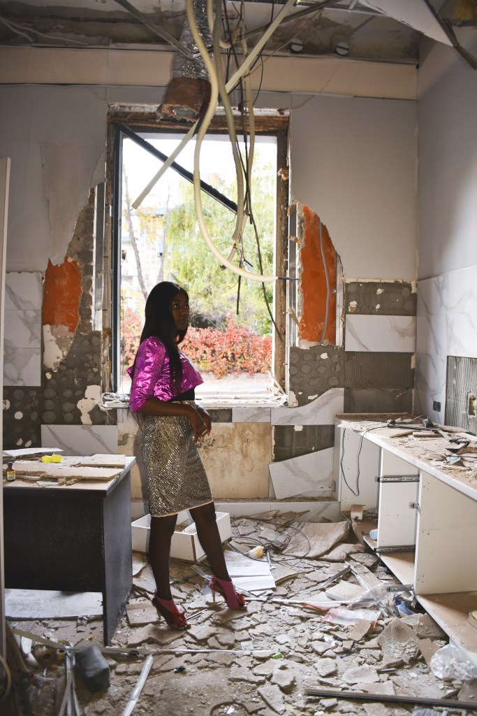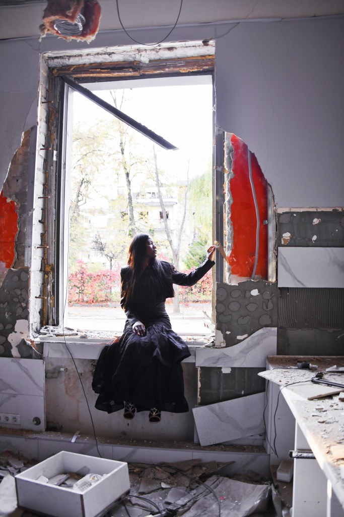 I did a photo session of a neighbour in my bombed-out office in a studio in Kharkiv. My idea is to show that despite the shelling of the city, we live, experience different feelings, manage to find inspiration, and fall in love with life again and again. Take real feelings and emotions from life here and now. Yes, I was saddened by the arrival of a bomb on the roof of the house where I had a business, but this allowed me to go further, to search and work on releasing my art even more. I love art and life without it is boring for me. Soon I will implement some of my new ideas. They are also the same as unusual, not standard. And our life is not standard. Either the light is turned off and the water is turned off in the city by the arrival of rockets, or explosions are heard somewhere. Then somewhere they have listened closer. I saw the explosion before my own eyes. I saw the flight of a rocket, it is very bright when it flies close and visually past or above you. These are very vivid impressions that give such a recharge and cheerfulness. Very much. But I’m no longer afraid. I will live long and long. And many more ideas to implement. Thank you for supporting Ukraine and buying my art on Artsy and other accounts where I post my work for sale.