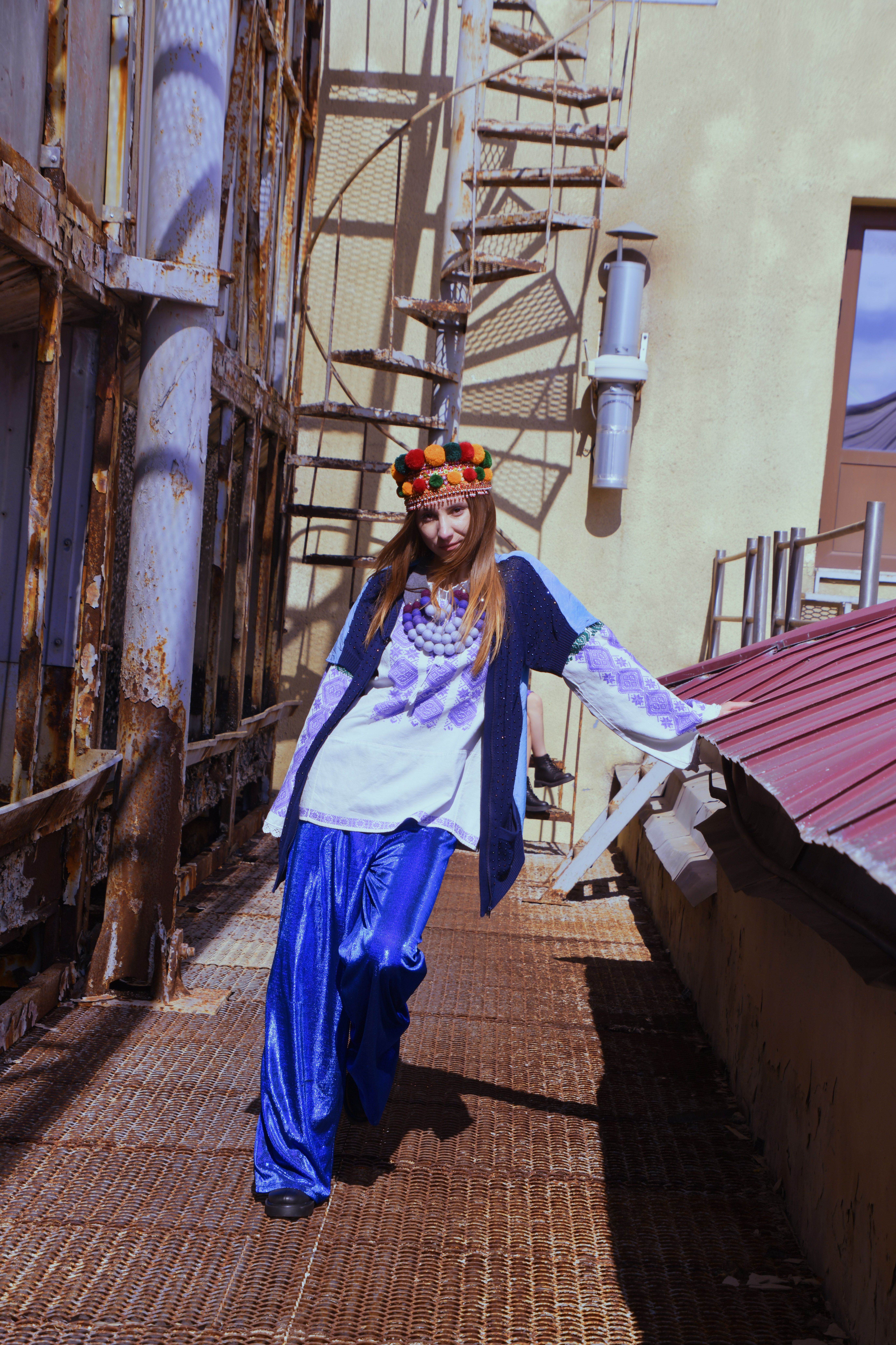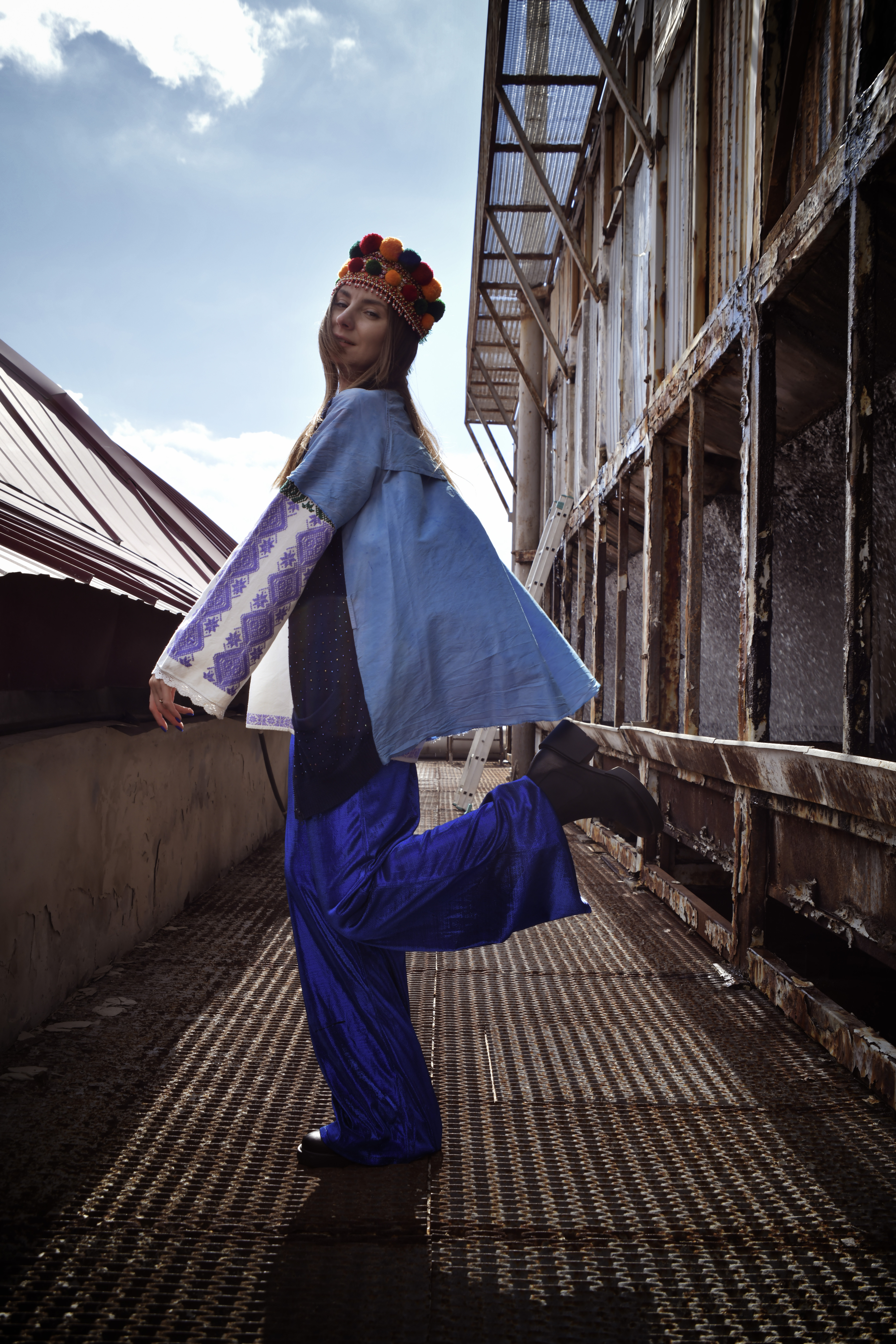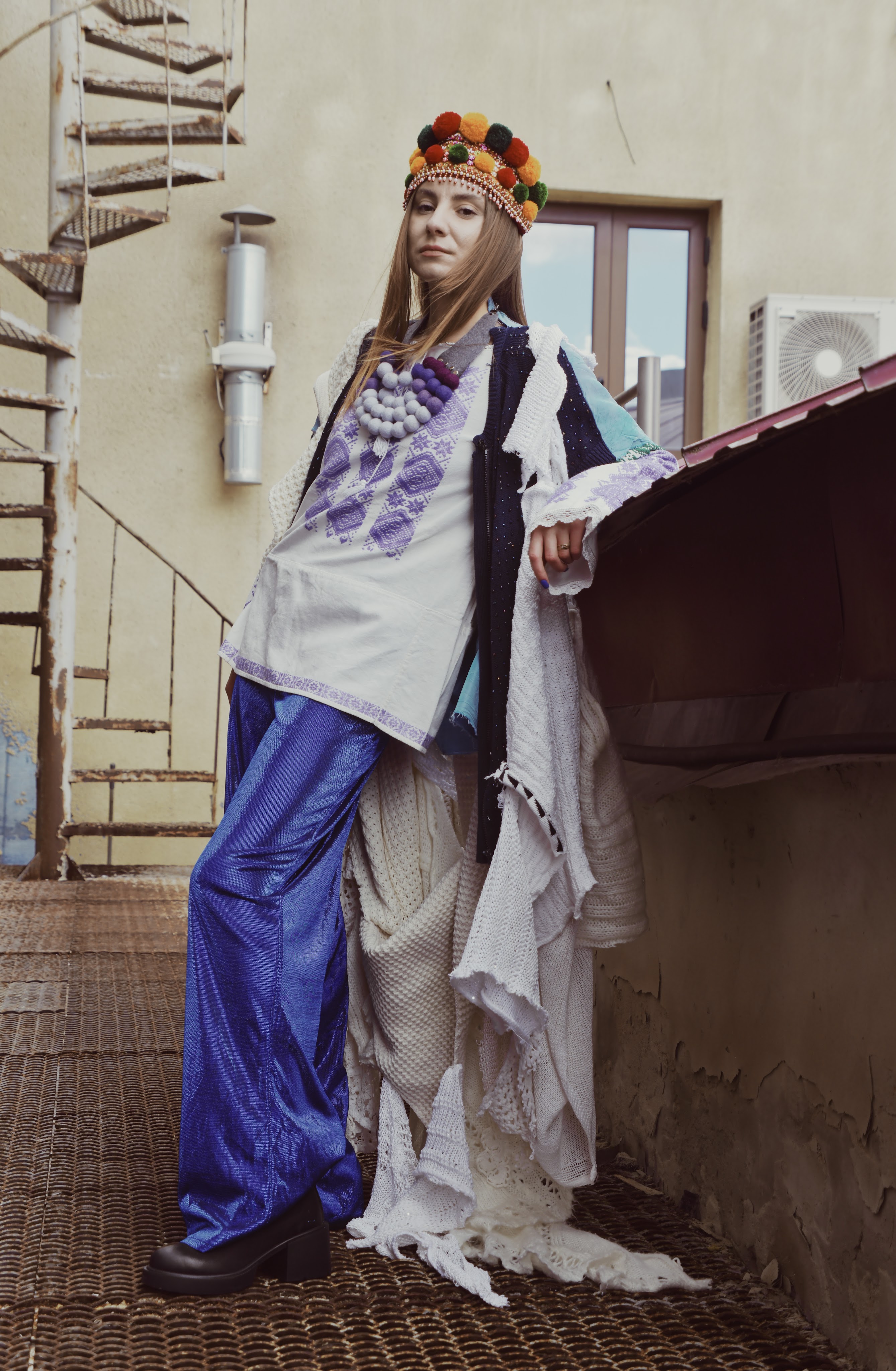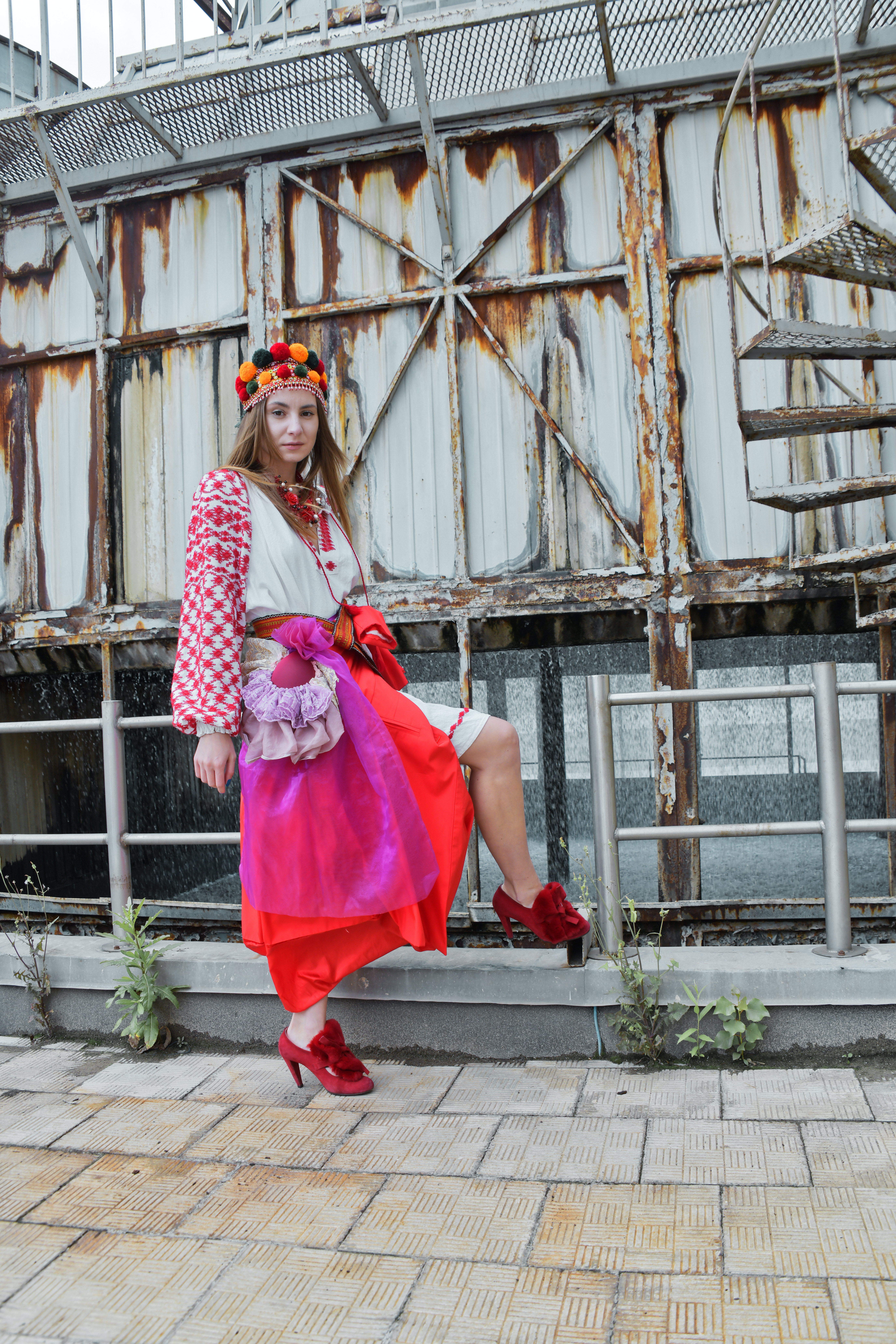 My inspiration is my country in which there is a war. This is self-support, peace and prosperity in my country, contrary to. New projects are being implemented. In this photo of women – modern beautiful non -name Ukrainians, cleaning with their hearts, rich in the soul, are able to gladly care about every moment that has lived, with faith in the best here and now. I wanted to show the culture of my country. I introduced all my imagination to this suit. With tapestries on the shoulders as a continuation of the image, like a jacket. Thought, visualization, the old clip “Chervona Ruta”, and the Association of a bright entrance with a colorful vocal ensemble spun in my head. And when I seized the information, I intuitively found inspiration in the film “Chervona Ruta” in 1971. The plot of the film is about the love of a girl and the guy who is in the rest of the vacationers.