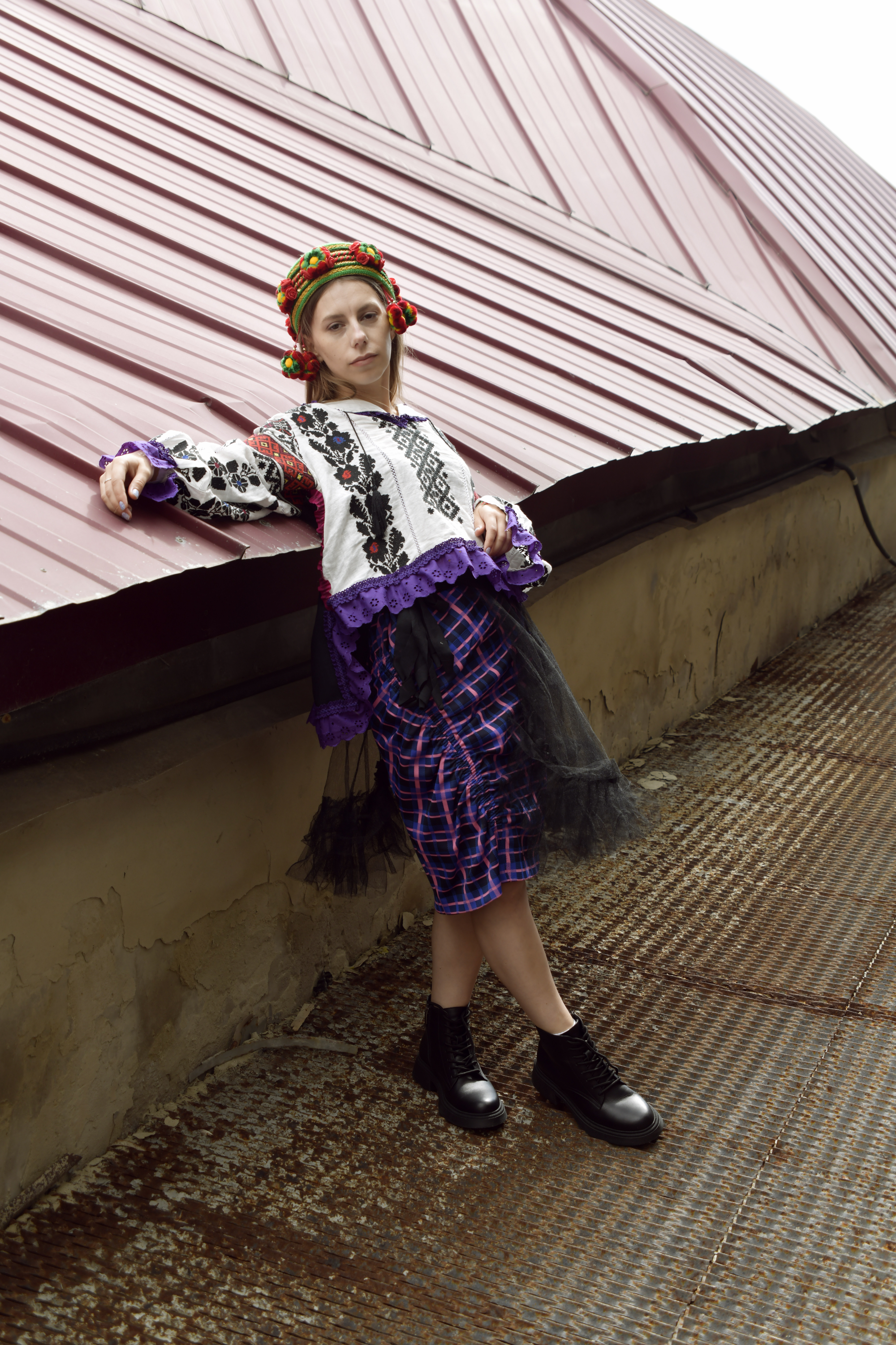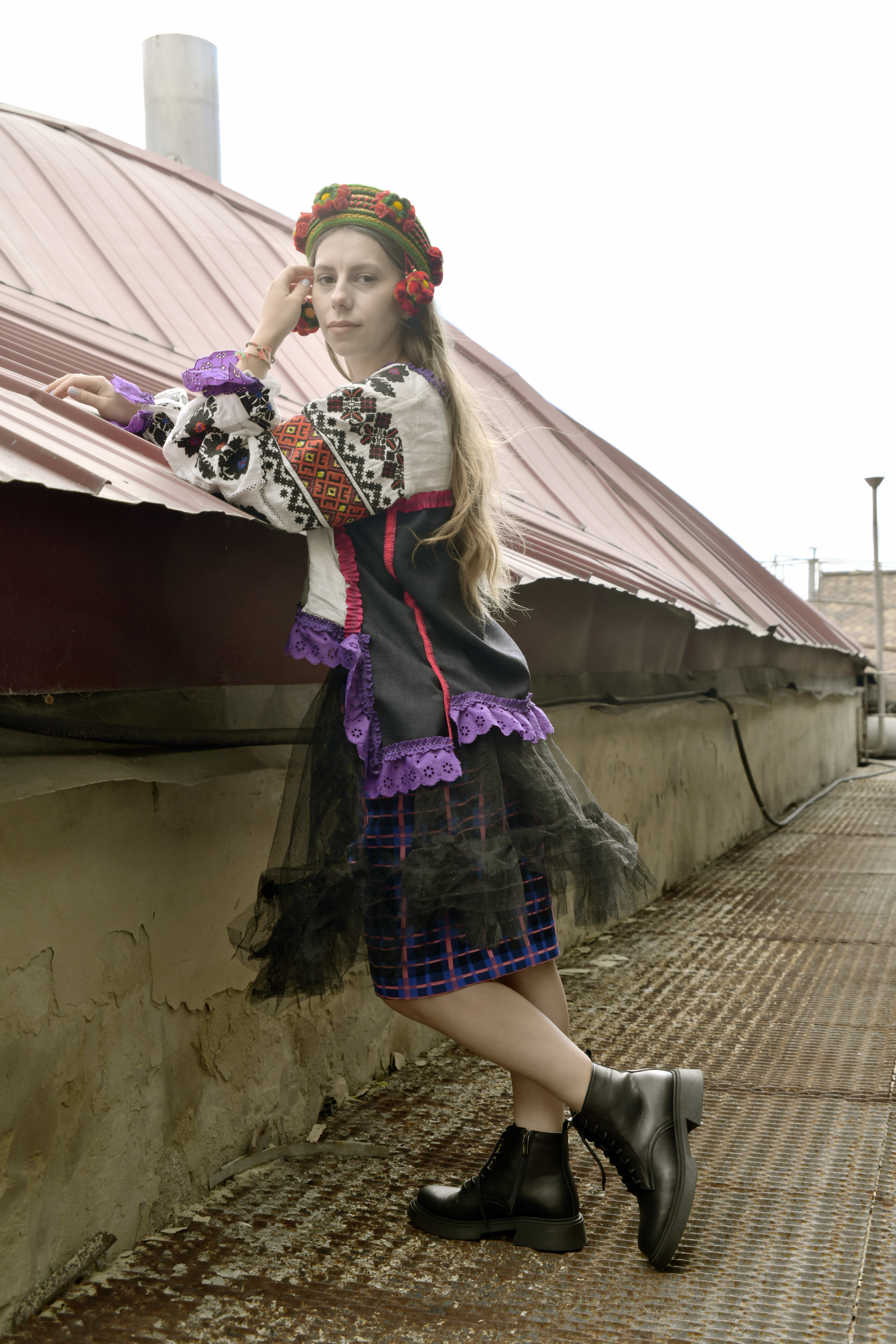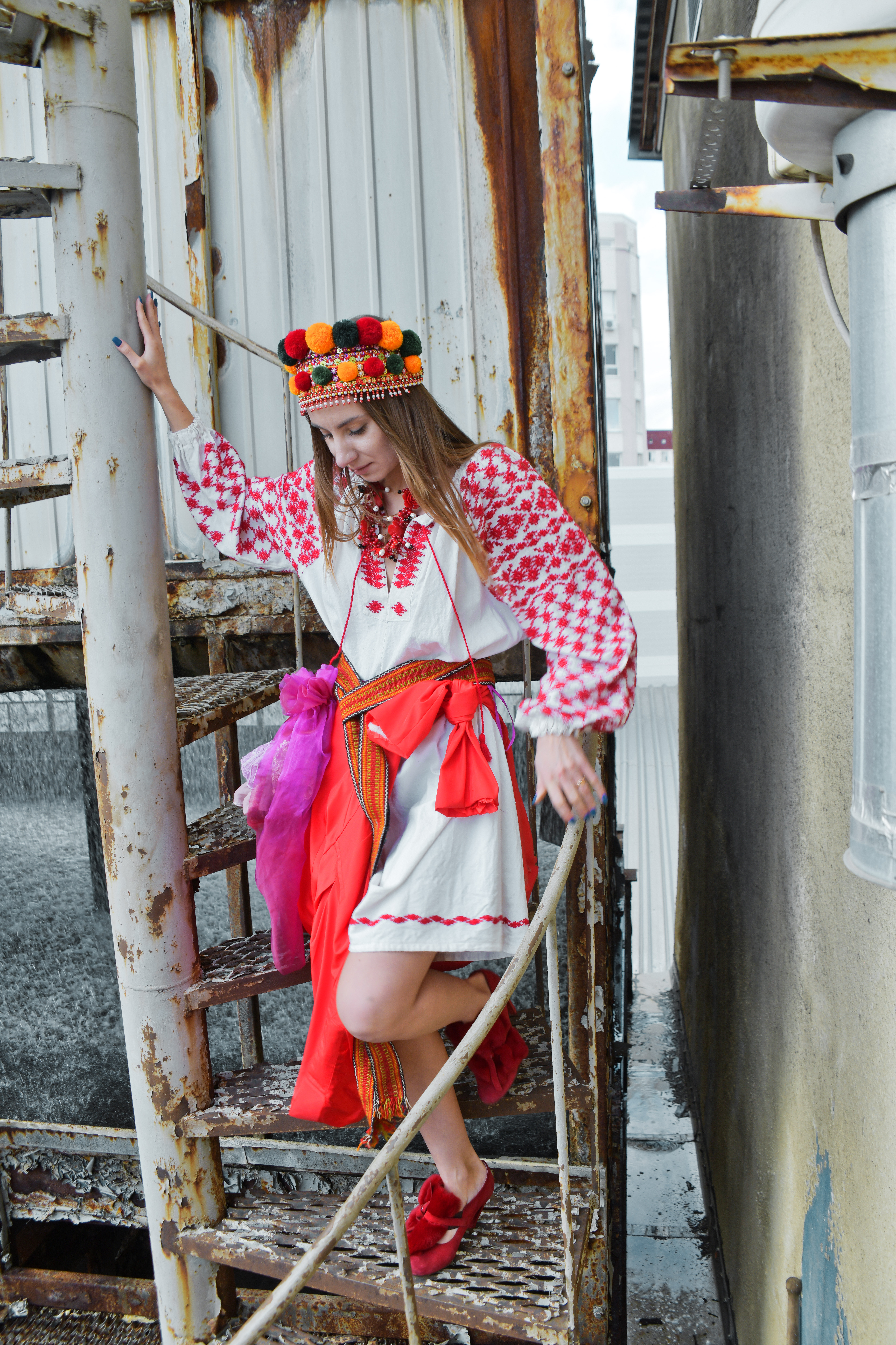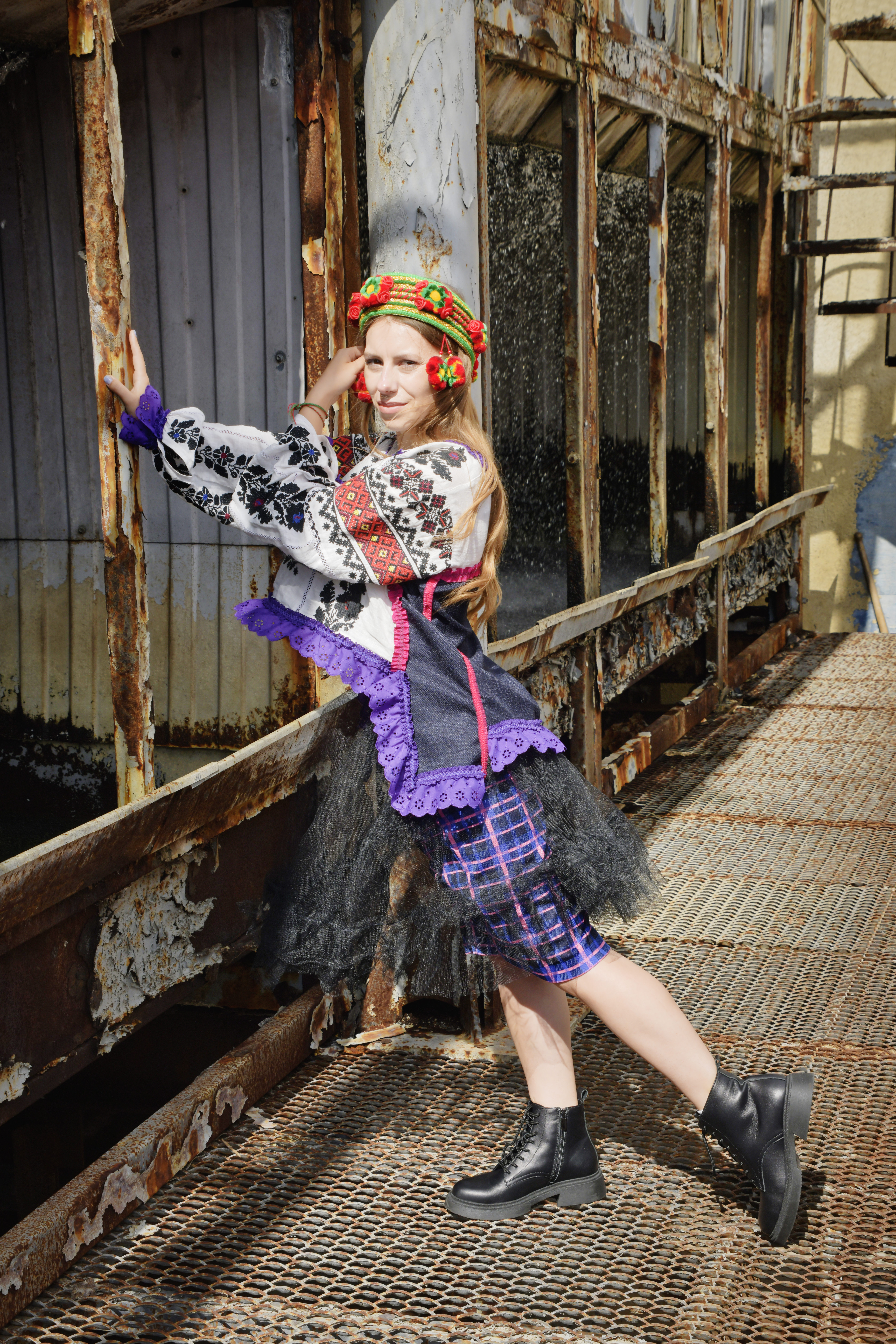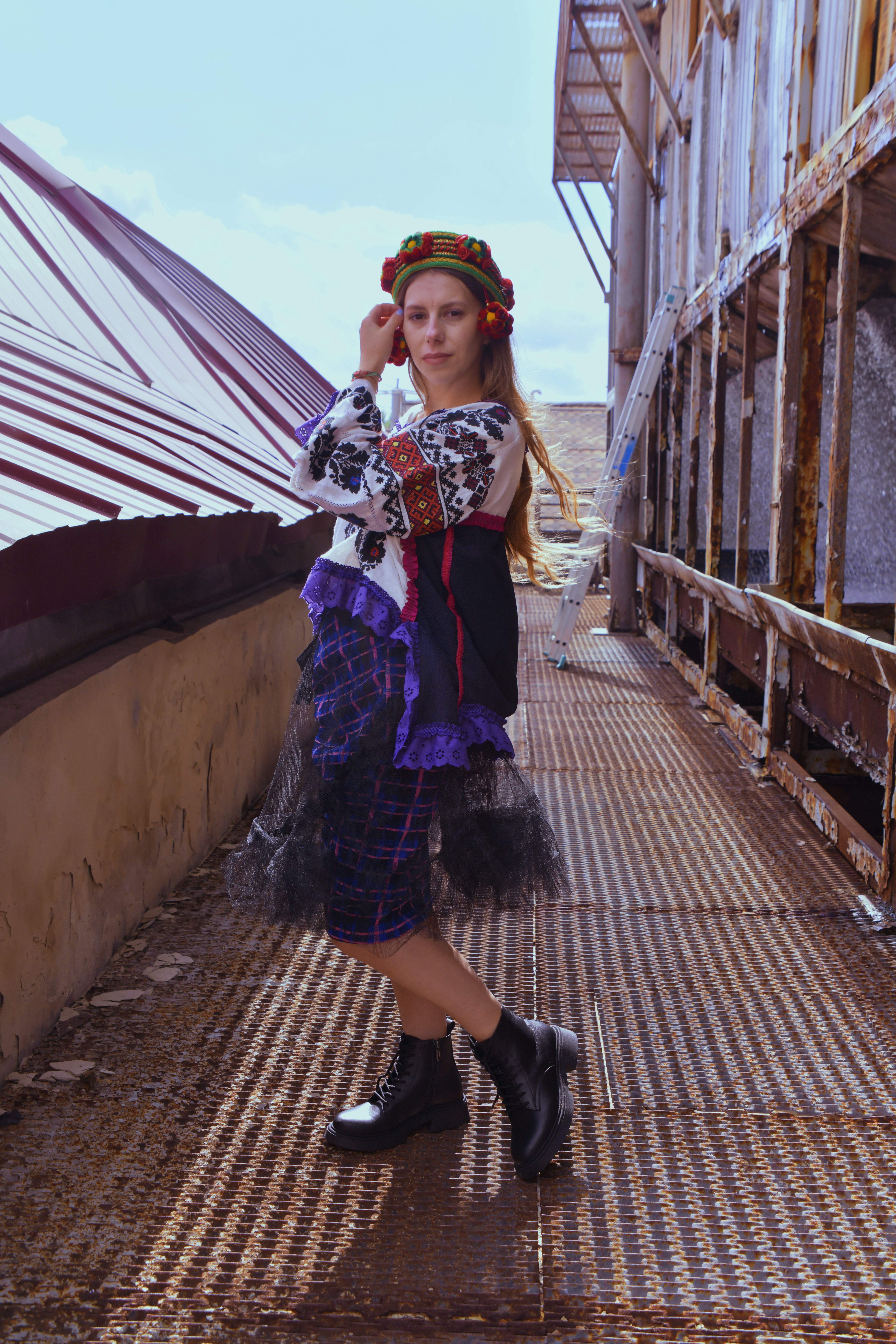 My inspiration is my country in which there is a war. This is self-support, peace and prosperity in my country, contrary to. New projects are being implemented. In this photo of women – modern beautiful non -name Ukrainians, cleaning with their hearts, rich in the soul, are able to gladly care about every moment that has lived, with faith in the best here and now. I wanted to show the culture of my country. I introduced all my imagination to this suit. With tapestries on the shoulders as a continuation of the image, like a jacket. Thought, visualization, the old clip “Chervona Ruta”, and the Association of a bright entrance with a colorful vocal ensemble spun in my head. And when I seized the information, I intuitively found inspiration in the film “Chervona Ruta” in 1971. The plot of the film is about the love of a girl and the guy who is in the rest of the vacationers.